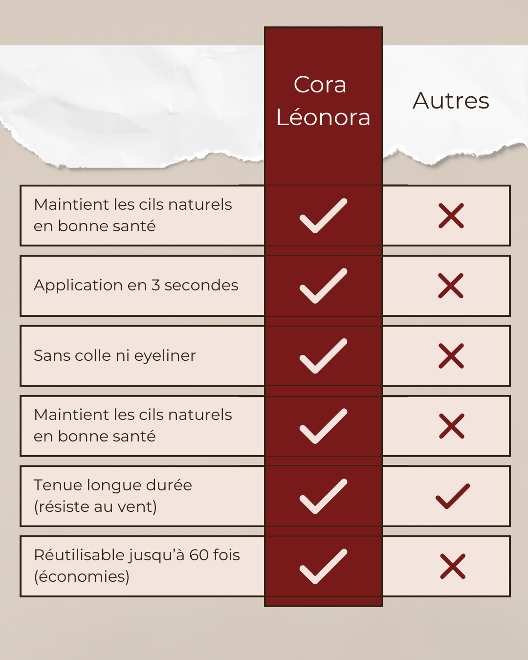 Testez le kit de cils Cora Léonora et constatez par vous-même. Le kit de cils est le kit de cils le plus avantageux du marché !